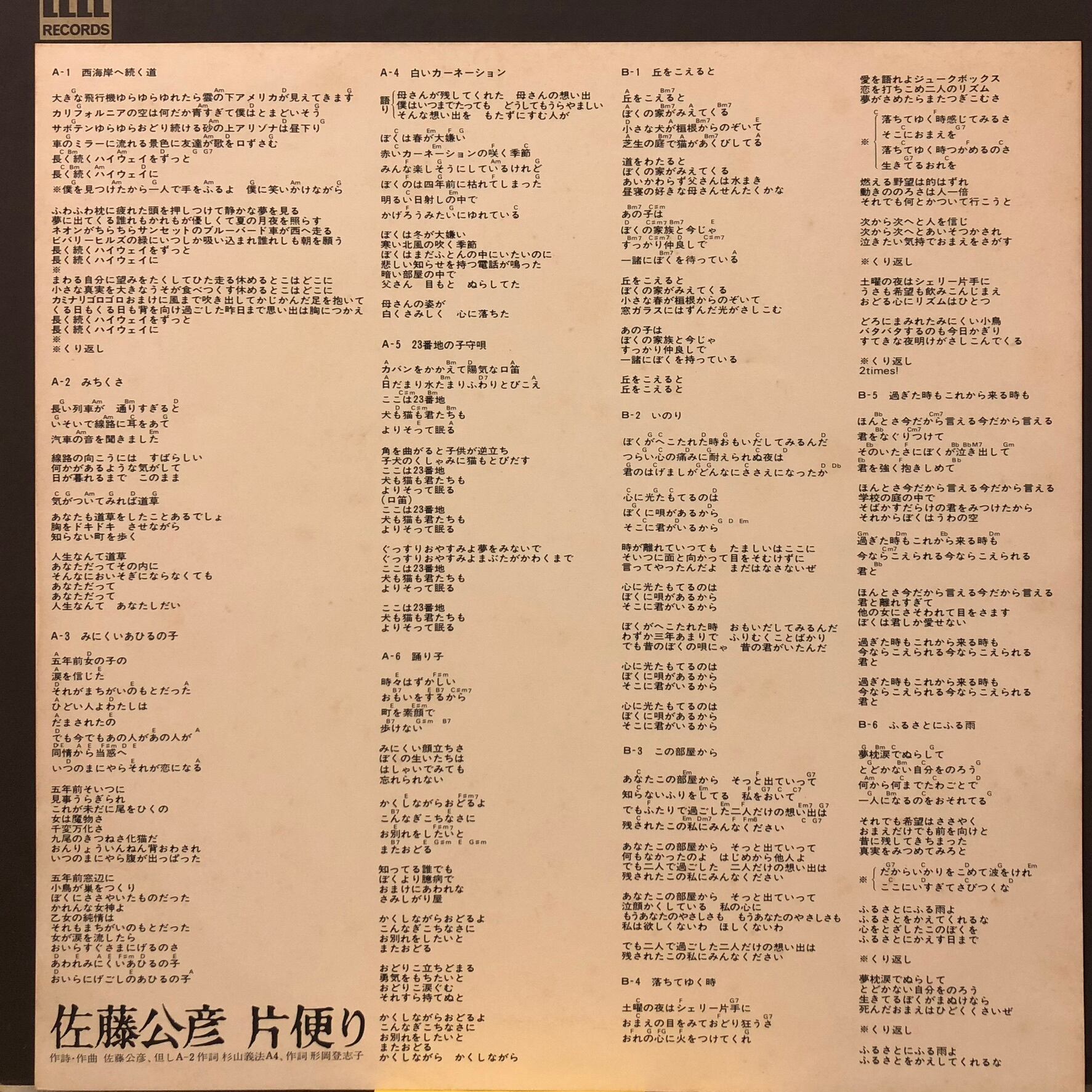 ’74年発売。ケメ6枚目のアルバム。西海岸フィーリングな爽快フォーク・ロック A2.、ニューオリンズ風サウンドのA3.、和レガエなB4.等、フォークの枠に収まらない魅力に溢れた一枚。
