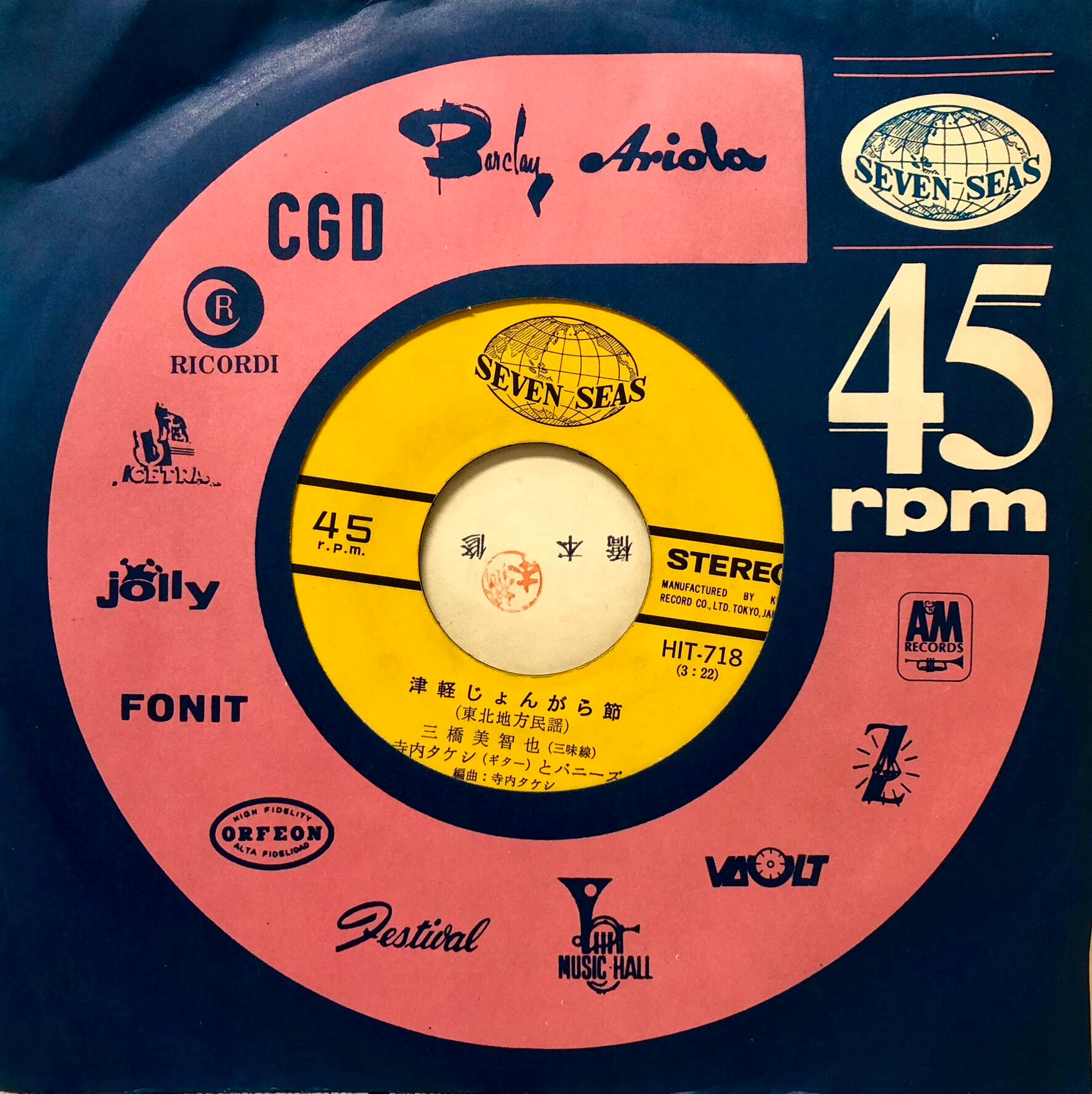 ’67年リリース。三橋美智也と寺内タケシのコラボレーション第一弾(※のちにディスコ・ブーム時にもコラボレーション)となった三味とエレキの異種格闘技シングル。丁々発止のフレーズが繰り広げられるデスマッチのようなサウンド。民謡?ガレージ?サイケ?プロレス?あらゆる要素を感じてほしい一枚デス。