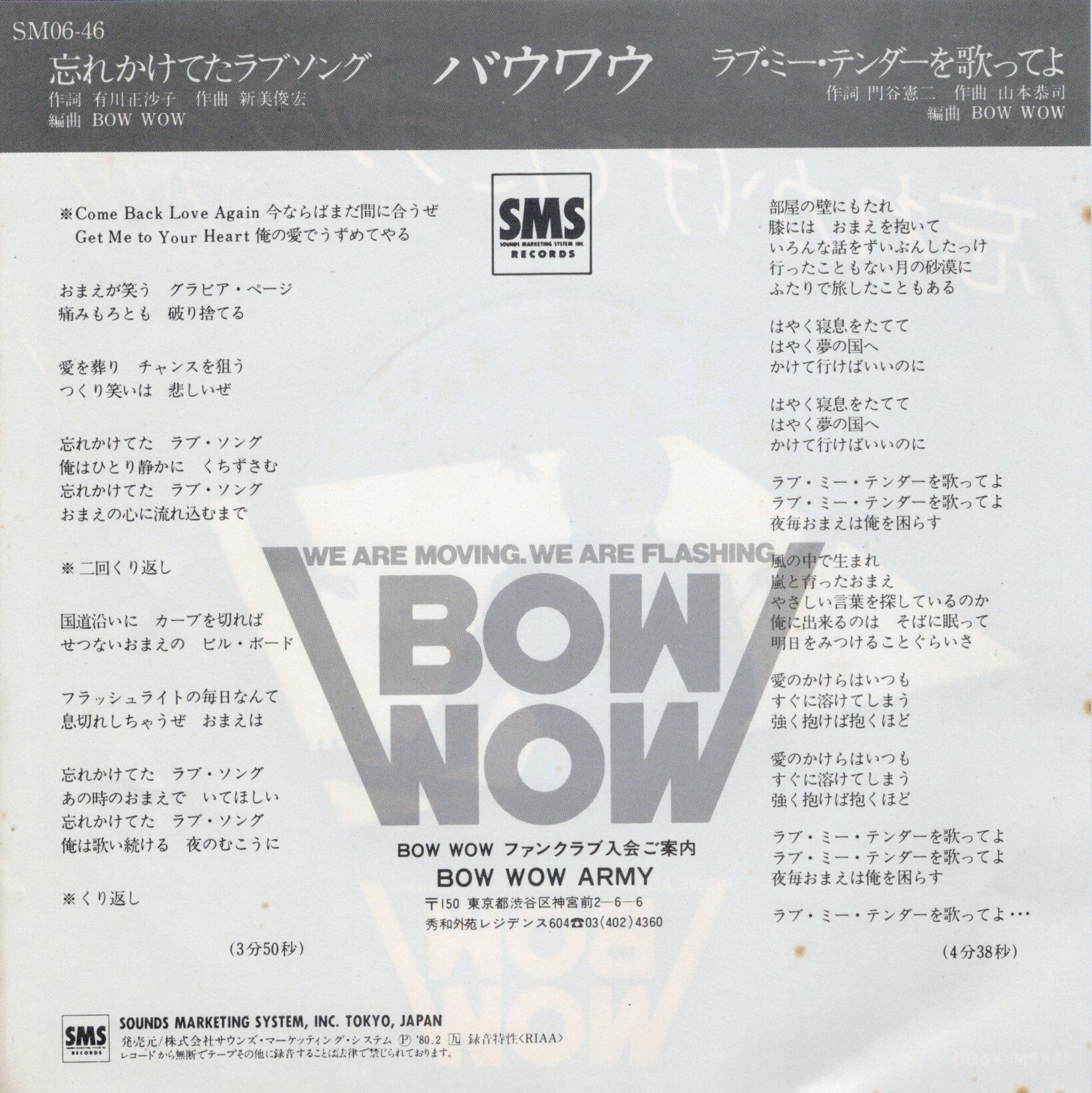 【7″】バウワウ 忘れかけてたラブソング / ラブ・ミー・テンダーを歌ってよ