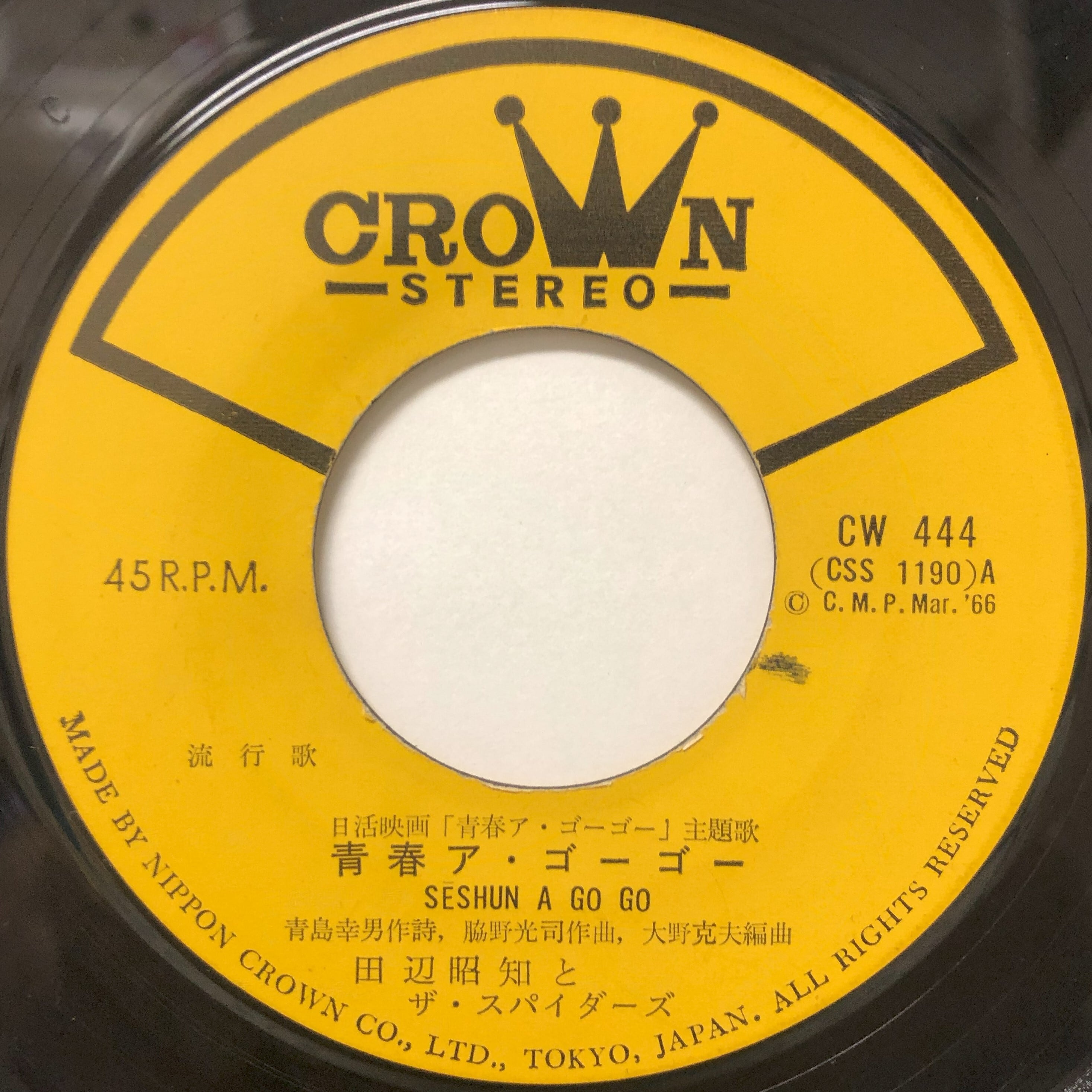 ’66年リリース。日活映画『青春ア・ゴーゴー』主題歌。スパイダースのコンボサウンドにあわせてゴーゴーを踊り狂ってほしい。