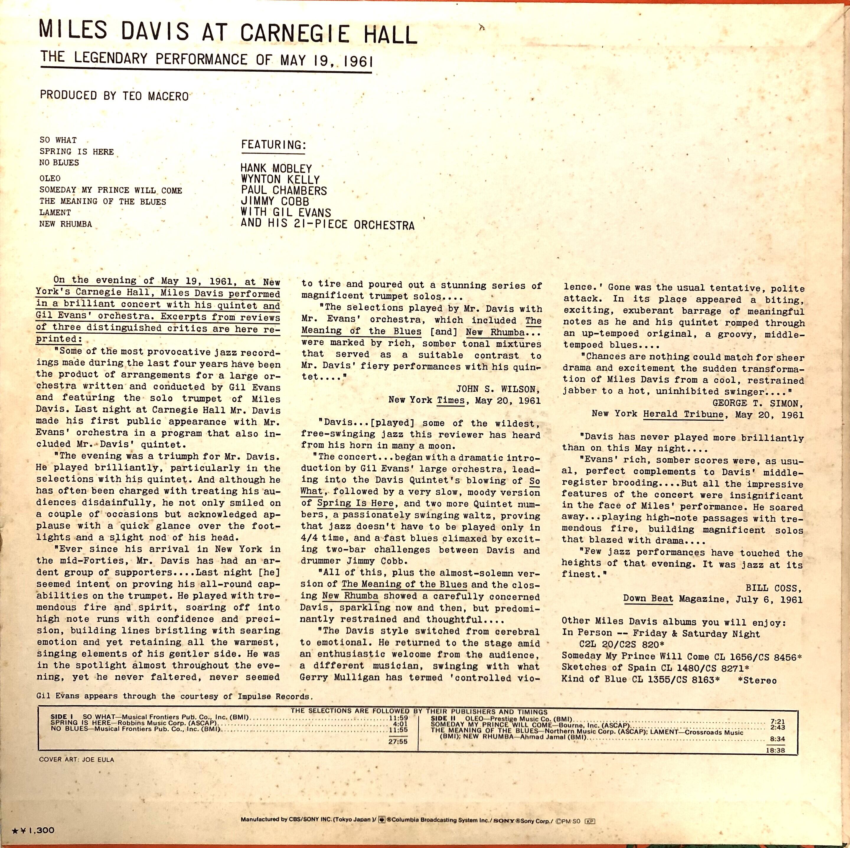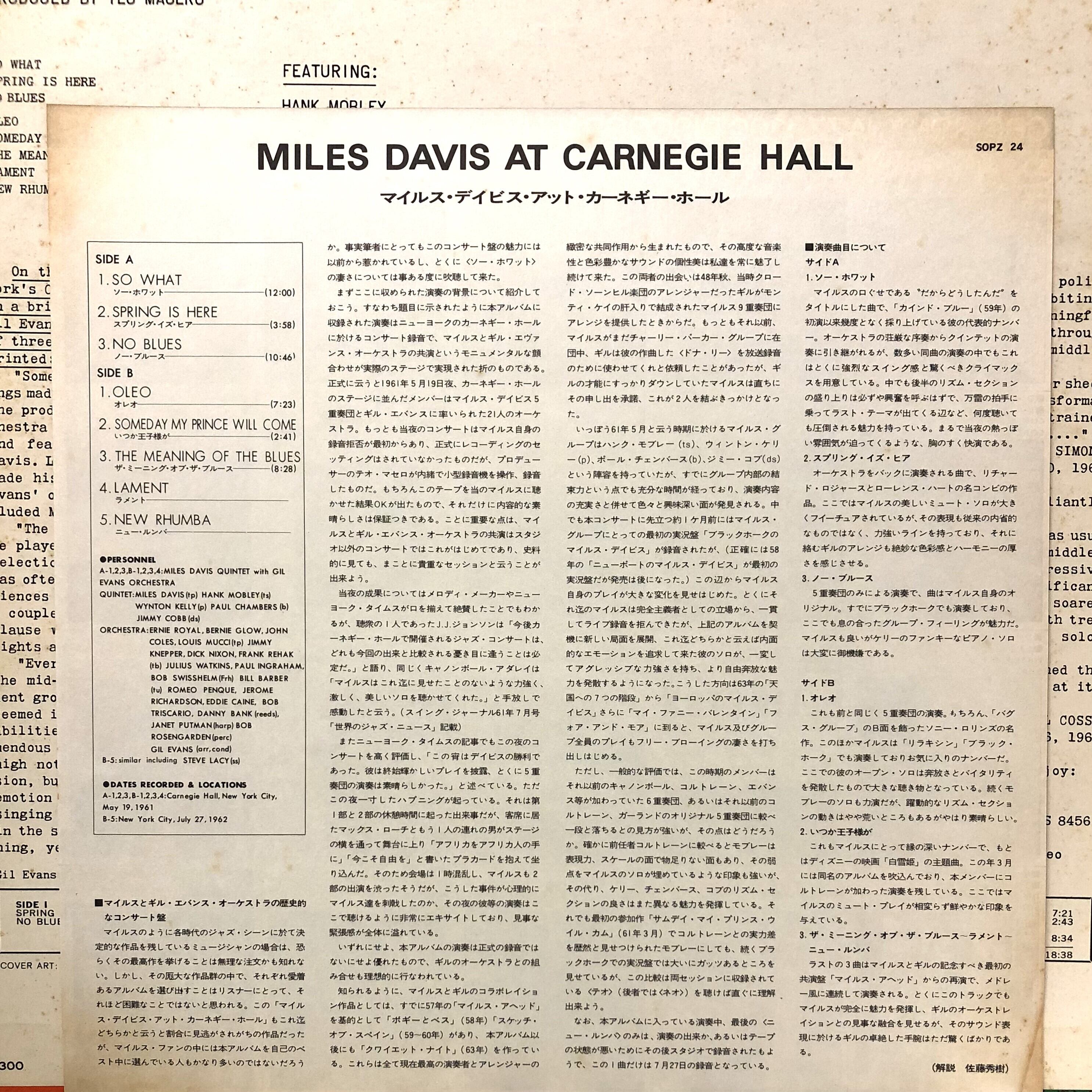【LP】マイルス・デイヴィス マイルス・デイヴィス・アット・カーネギー・ホール Miles Davis – Miles Davis At Carnegie Hall
