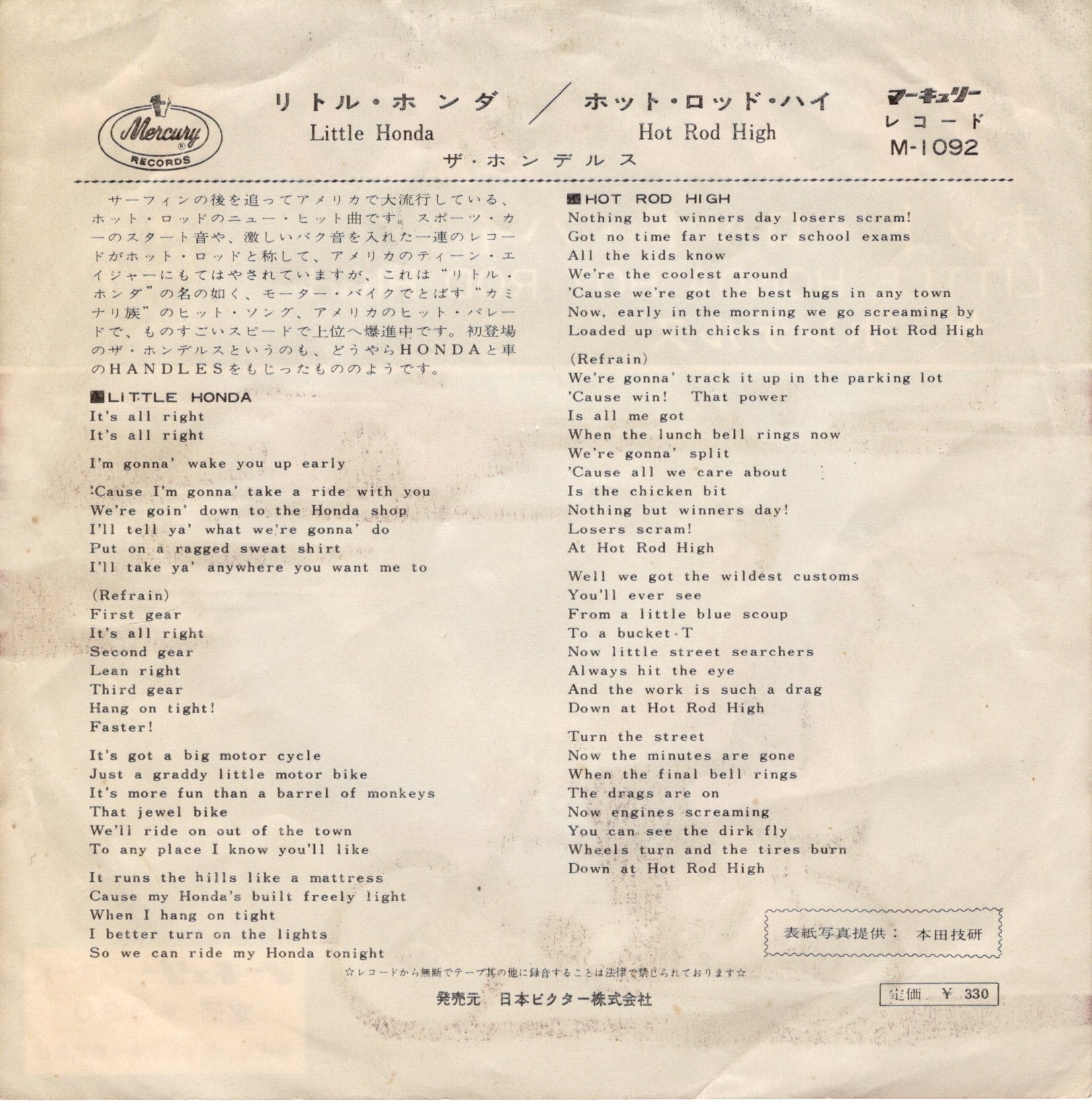【7″】ザ・ホンデルス リトル・ホンダ / ホット・ロッド・ハイ THE HONDELLS - LITTLE HONDA / HOT ROD HIGH