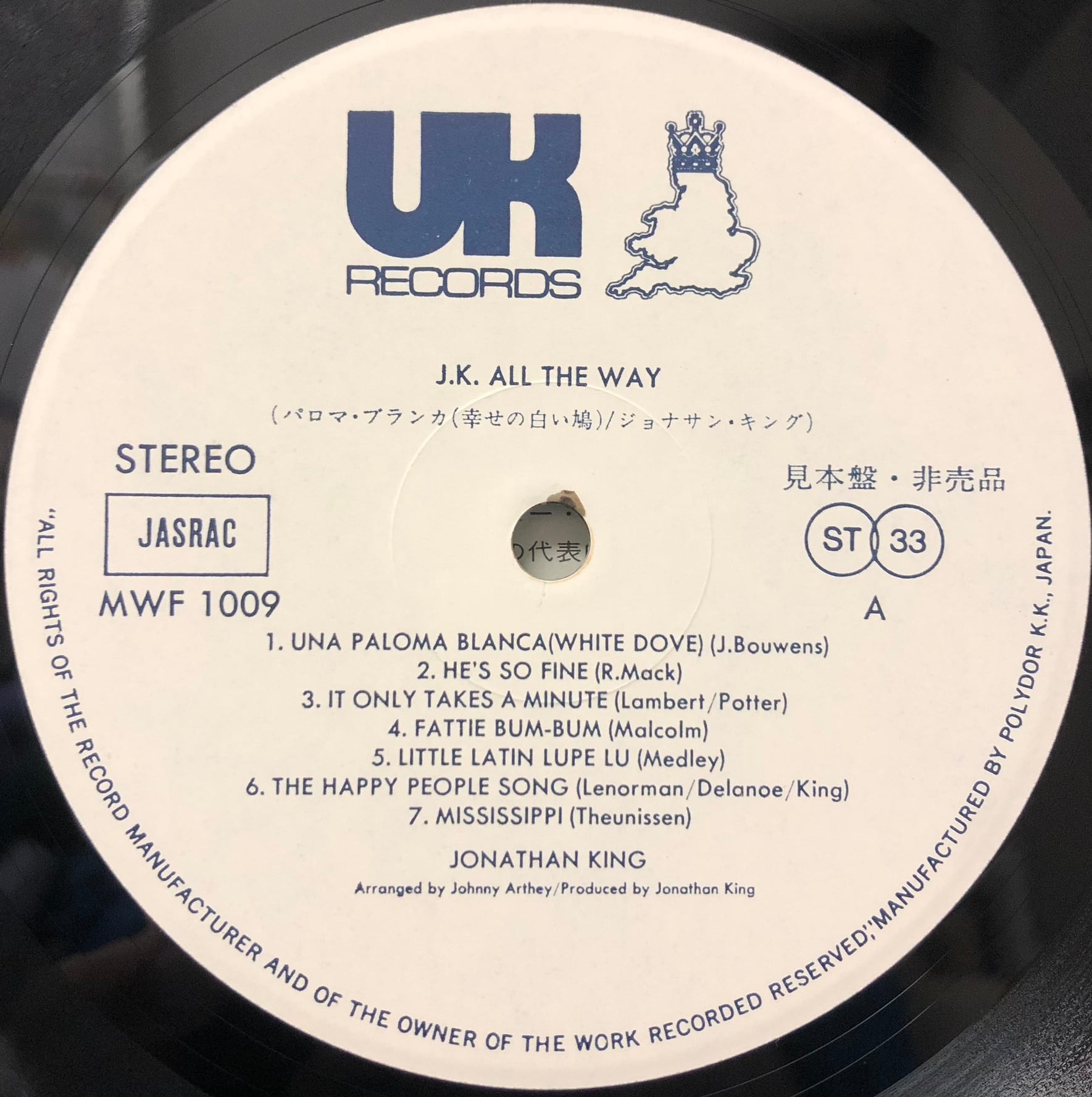 【LP】ジョナサン・キング パロマ・ブランカ(幸せの白い鳩) Jonathan King – J.K. All The Way