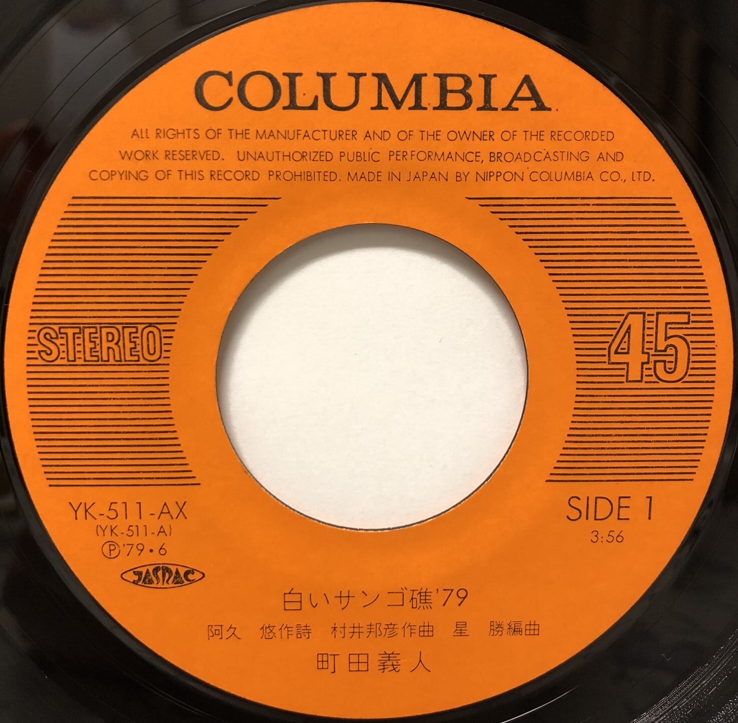 【7″】町田義人 白いサンゴ礁'79 / 星空のバレリーナ