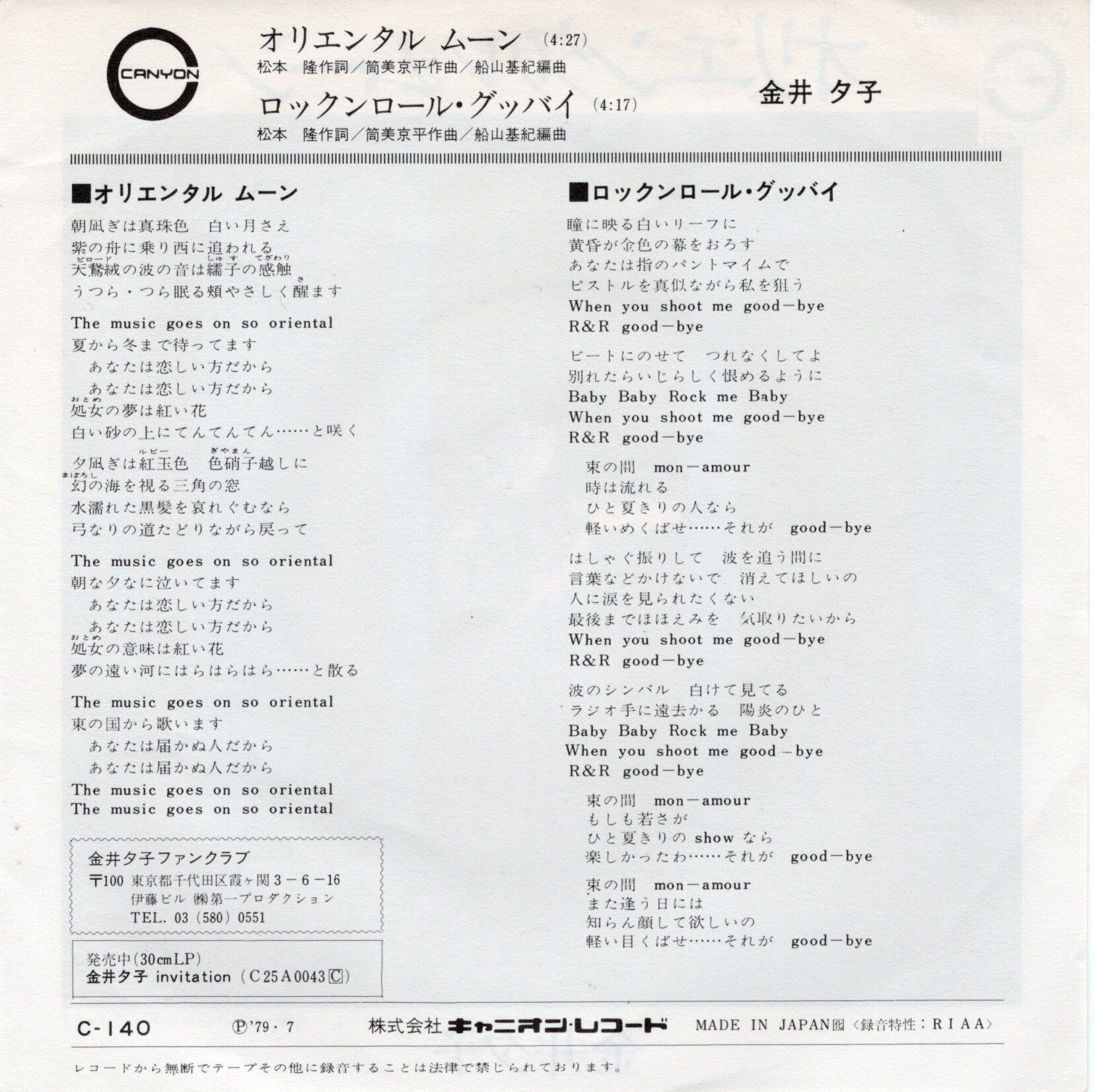 【7″】金井夕子 オリエンタル ムーン / ロックンロール・グッバイ