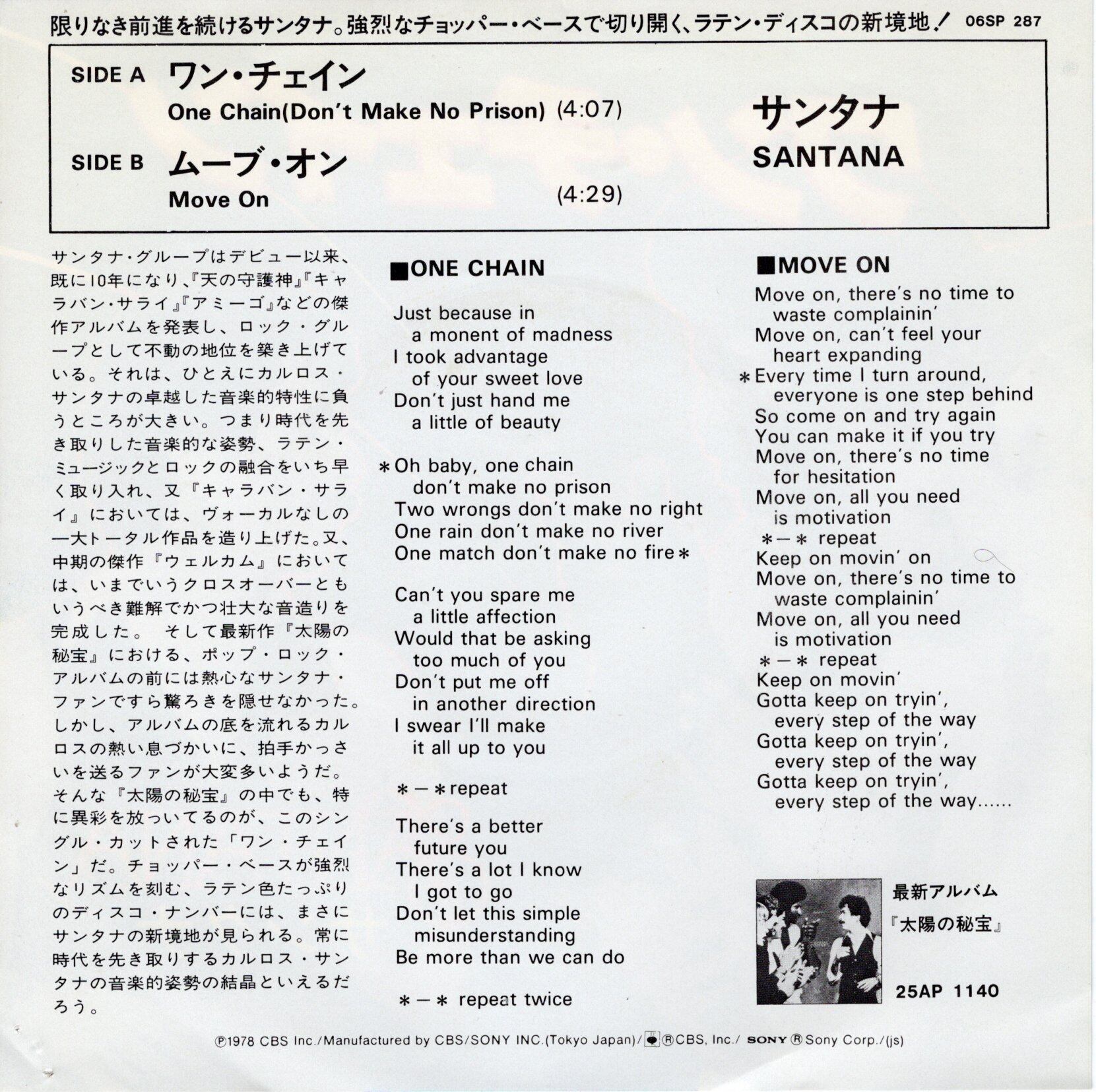 【7″】サンタナ ワン・チェイン / ムーヴ・オン Santana – One Chain (Don't Make A Prison) / Move On