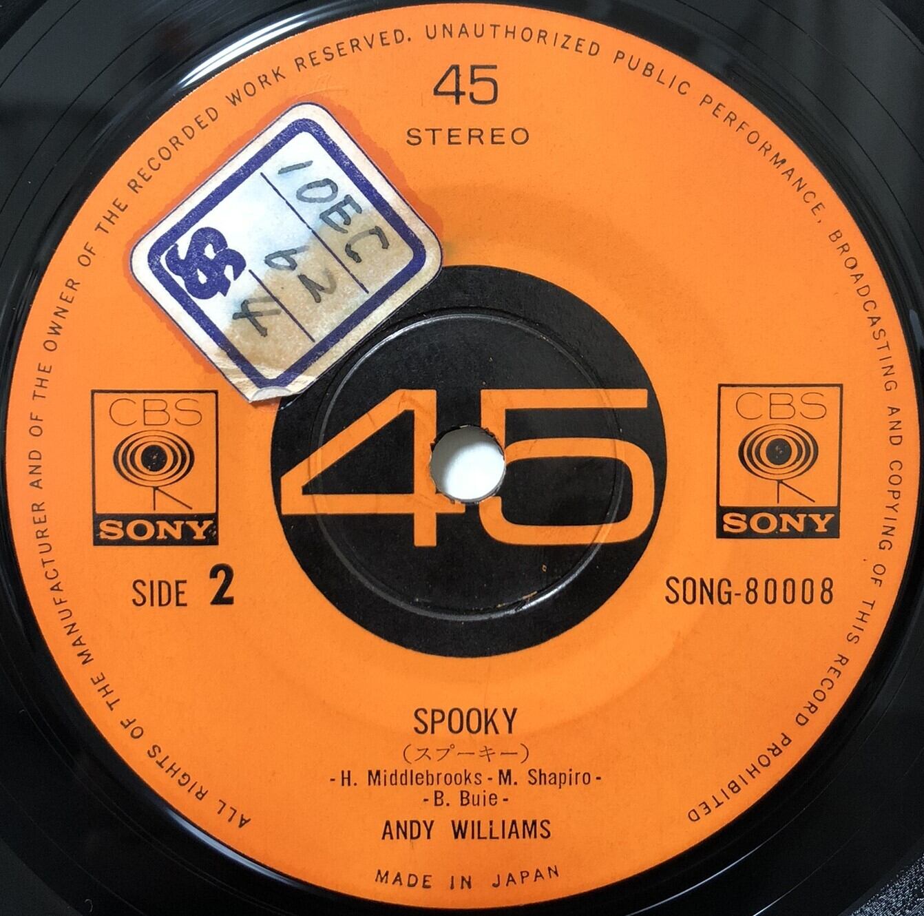 【7″】アンディ・ウィリアムス アップ・アップ・アンド・アウェイ(ビートでジャンプ) / スプーキー Andy Williams – Up, Up And Away / Spooky