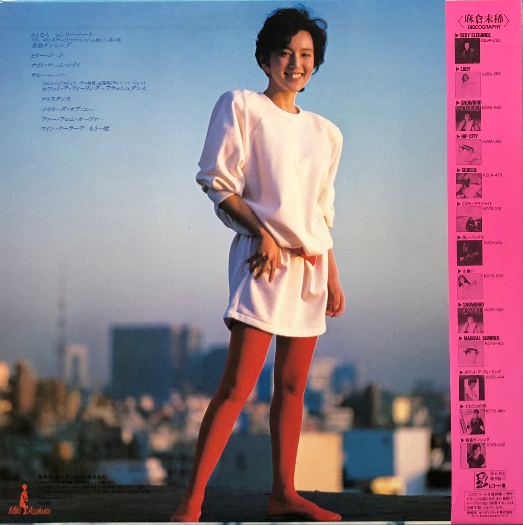 ’84年リリース。「黄昏ダンシング」「ホワット・ア・フィーリング」の2大ヒットを含む麻倉未稀の5thアルバム。マイケル・ジャクソン「ビリー・ジーン」やゾンビーズ「テル・ハー・ノー」、映画『ステイン・アライヴ』主題歌「ファー・フロム・オーヴァー」等の洋楽日本語カバーも収録。84年らしいシンセPOP×ダンサブルビートでまとめられたPOPアルバム。