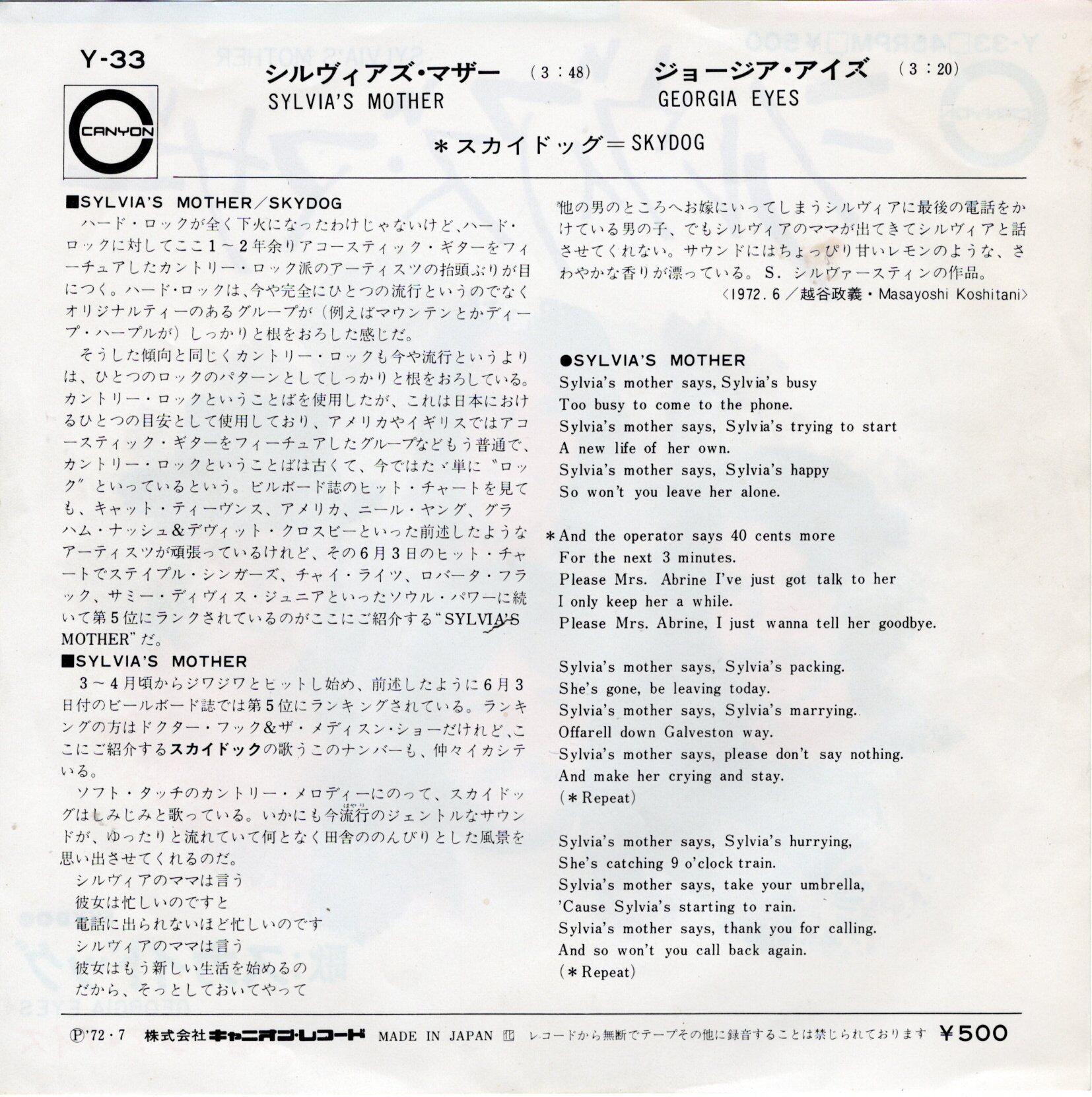 【7″】スカイドッグ シルヴィアズ・マザー / ジョージア・アイズ Skydog – Sylvia's Mother / Georgia Eyes