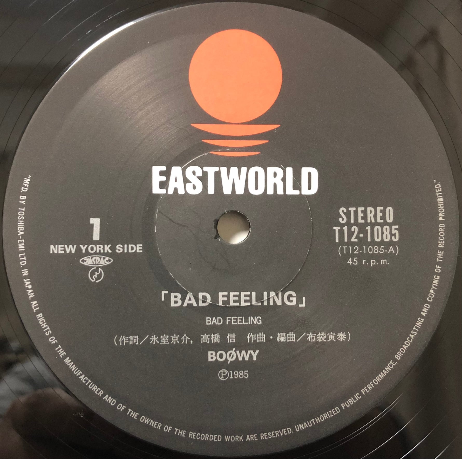 ’85年リリース。A1「バッド・フィーリング」はアルバムVersionと異なるリミックスVersionを収録。12inchサイズでリリースされたBOØWYの2ndシングル。