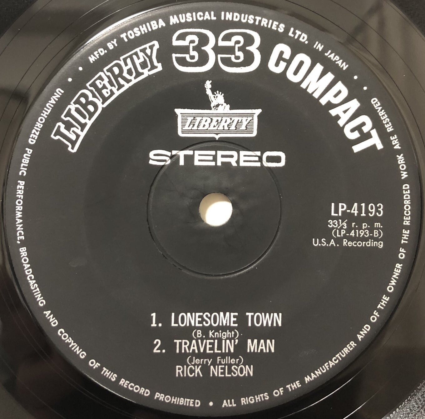 ’66年発売。リック・ネルソンの代表曲4曲入りコンパクト盤。A2、B2等、ギターはエルヴィスとのプレイでも知られるジェームズ・バートンが担当。