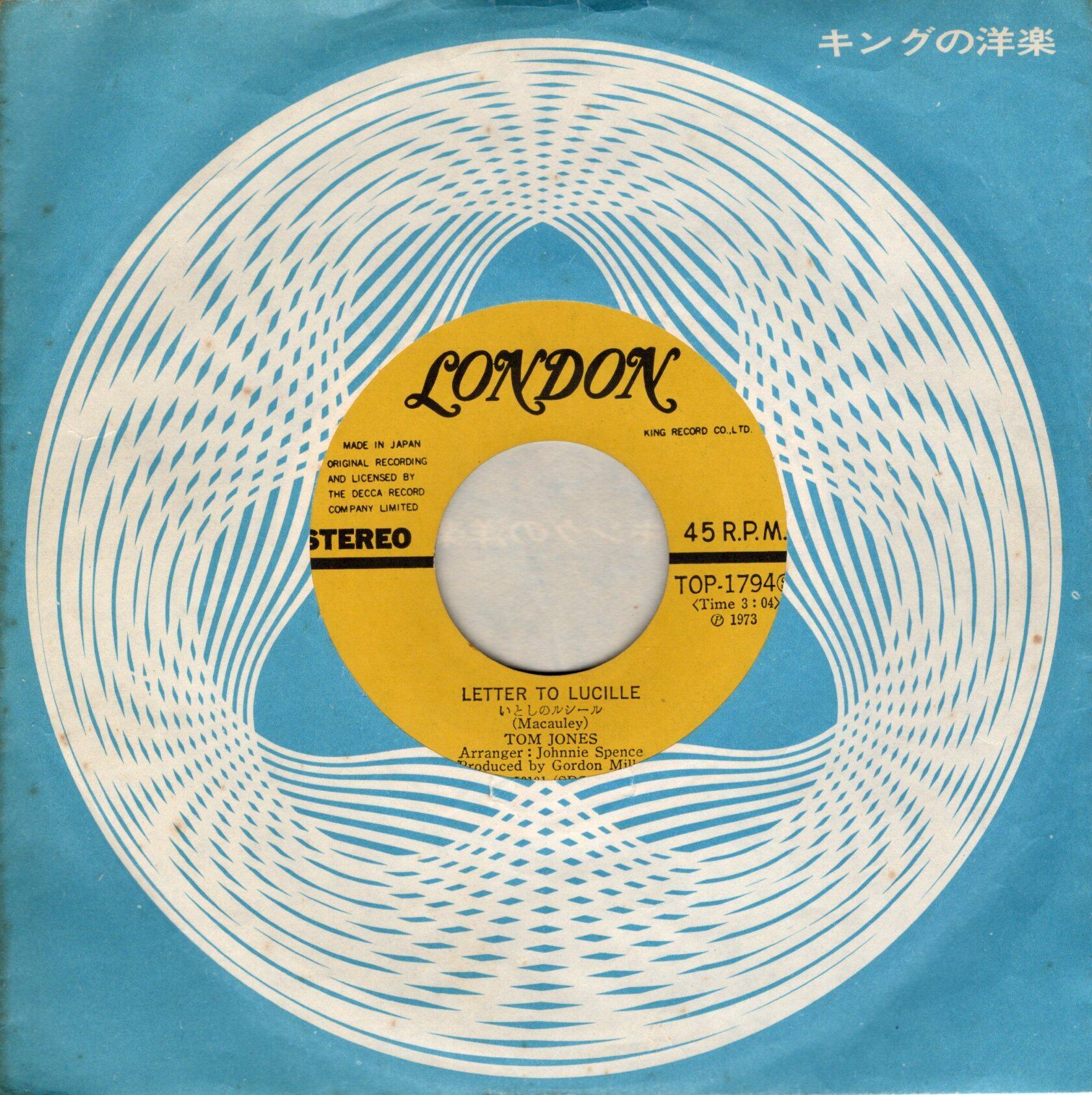 【7″】トム・ジョーンズ いとしのルシール / サンク・ザ・ロード Tom Jones – Letter To Lucille / Thank The Lord