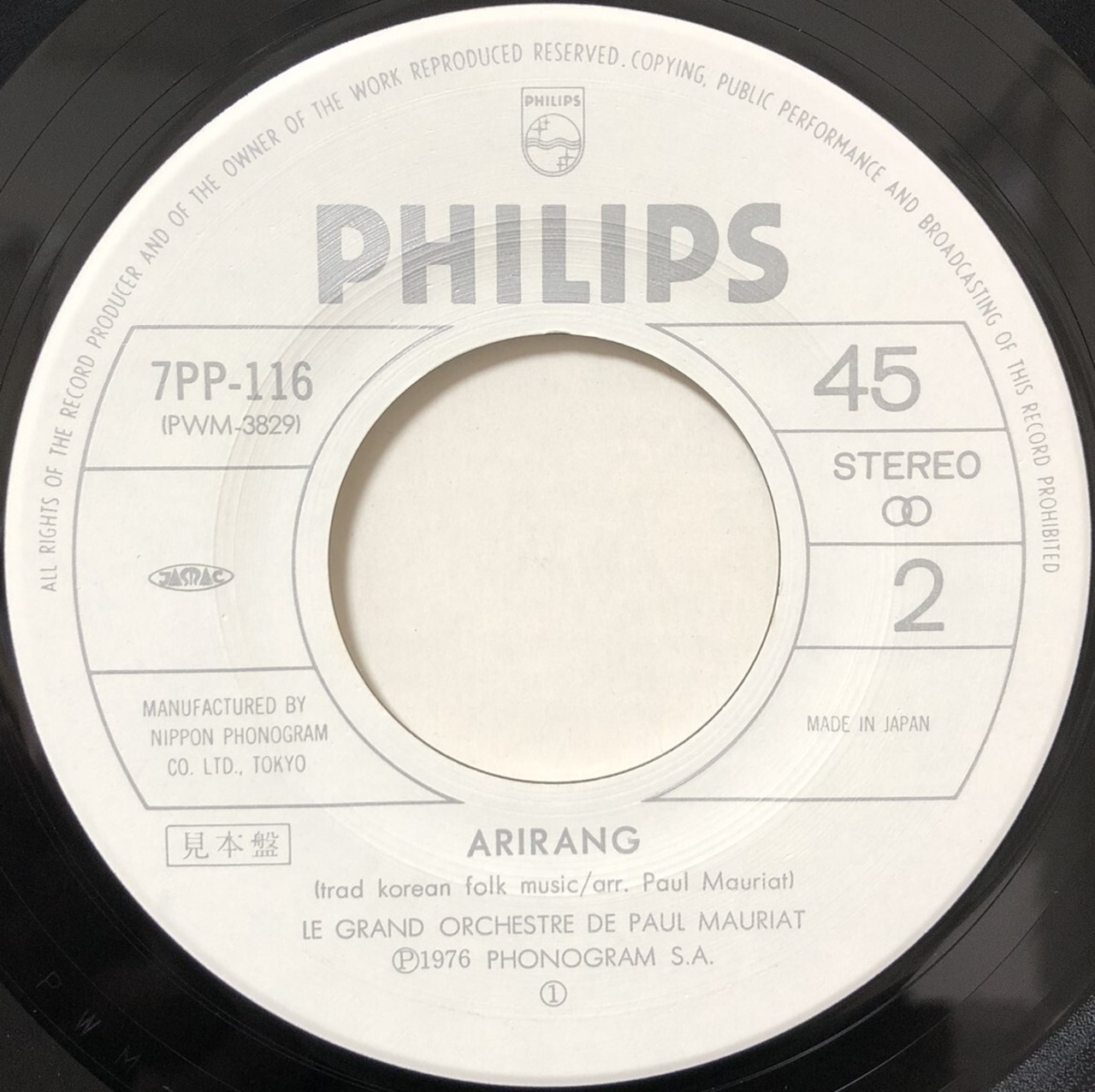 【7″】ポール・モーリア 釜山港へ帰れ / アリラン LE GRAND ORCHESTRE DE PAUL MAURIAT - PLEASE RETURN TO PUSAN PORT "DORAWAYO PUSAN HANG" / ARIRANG