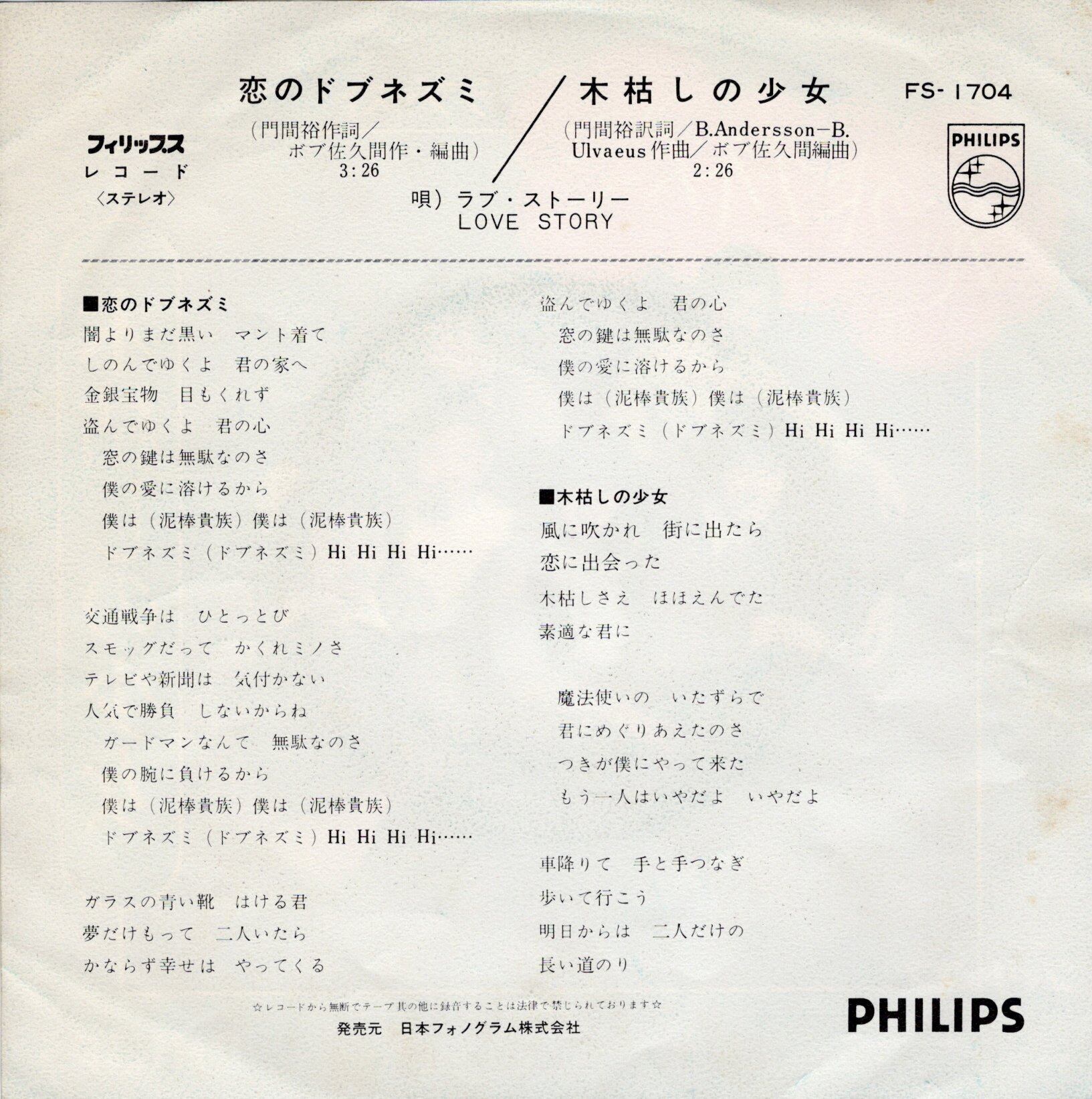 【7″】ラブ・ストーリー 恋のドブネズミ / 木枯らしの少女 Love Story - Koi No Dobunezumi / She's My Kind Of Girl