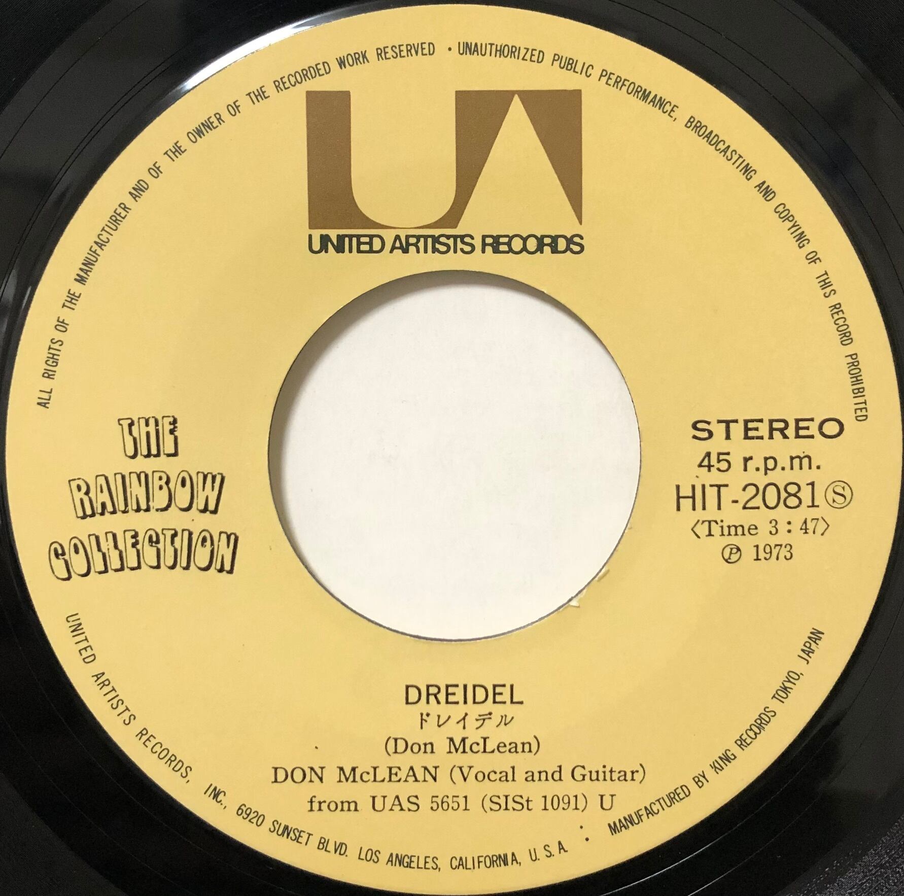 【7″】ドン・マクリーン ドレイデル / ブロンコ・ビルの嘆き Don McLean - DREIDEL / BRONCO BILL'S LAMENT